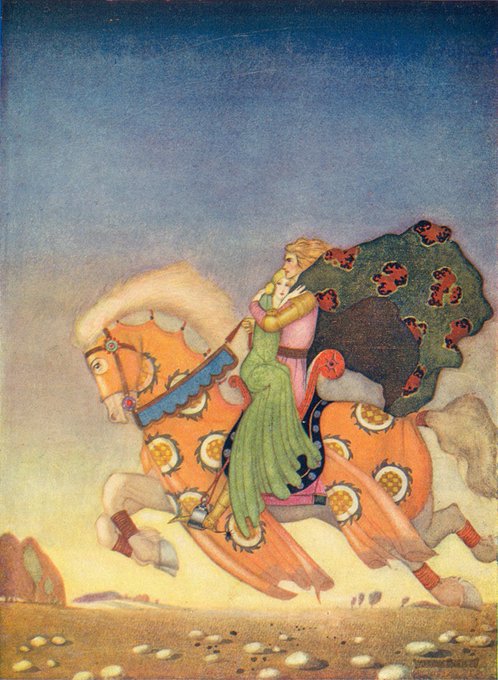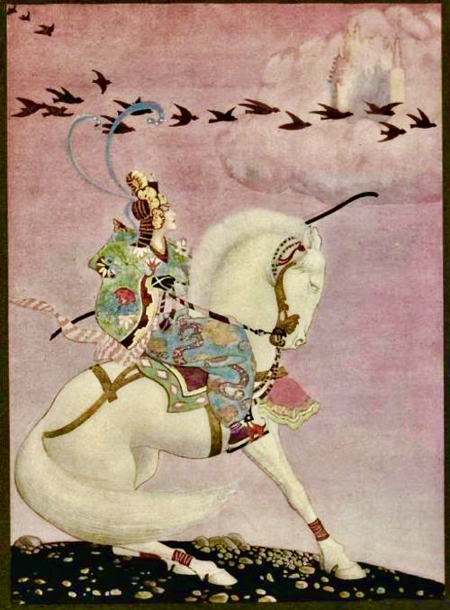 Thomas Mackenzie’s (1887-1944) magical illustrations of horses from Tristan & Iseult; Gareth fighting the Red Knight; Aladdin & his Wonderful Lamp.