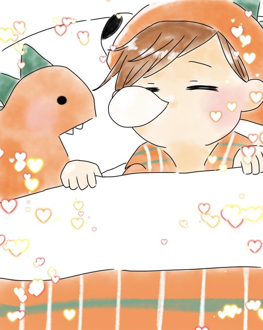 おやすみケタさん🦖🧡 #ツド絵