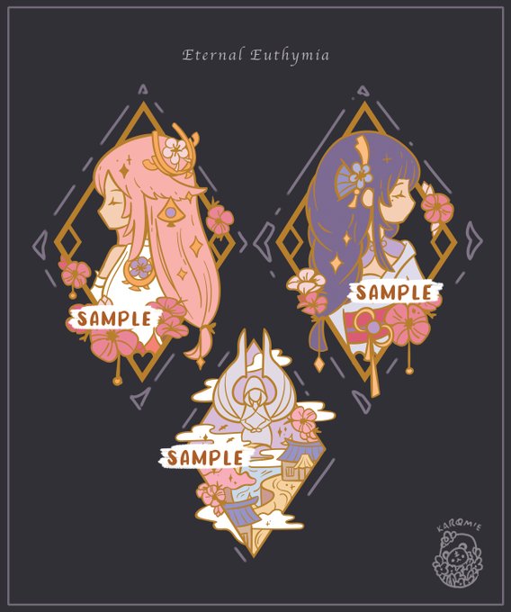 aaaand here's first 3 pins for my upcoming genshin kickstarter up on 13th April next week! #yaemiko #raidenshogun 🌿 ayato and thoma up next lesgooo