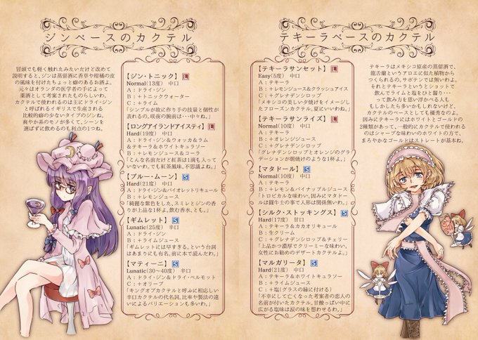 【同人再掲】お酒を飲む機会が増えるこの季節、幻想郷の住人達とカクテルの種類を覚えておくとお酒の席がより楽しくなるかも?