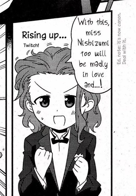 vamos aproveitar o pride month para falar que yukari akiyama de girls und panzer, em um mangá chamado motto love love sakusen desu (que é fanon mas foda-se), é sáfica canon !