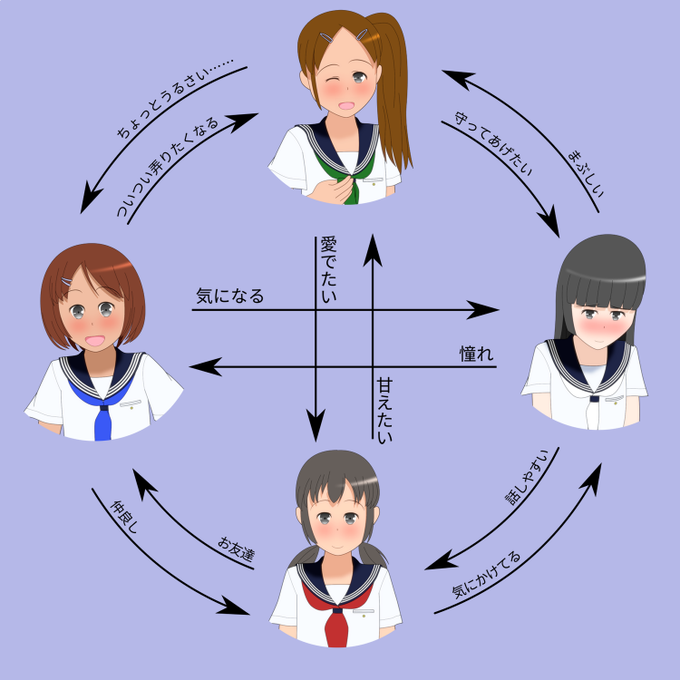 セーラー服のスカーフって色ごとにイメージがあるなあって思ってるんですけど、そう思いませんか? 青は元気、赤はいかにも!って感じ、緑はお姉さんっぽくて、白はおしとやか……って感じがします。