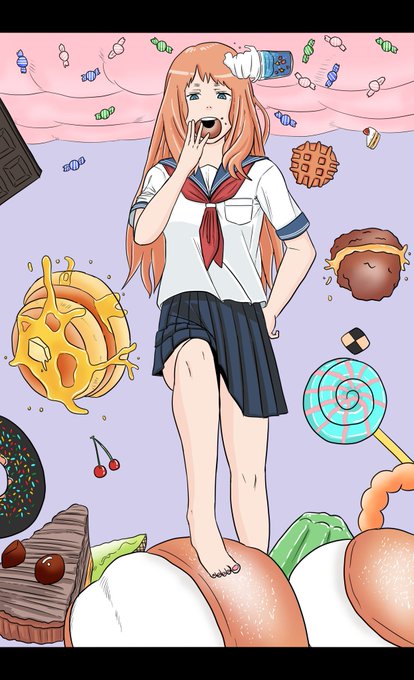 『スイーツガール』 上げ直しです。これでどうじゃろ? いいねくださった方すみません💦 #絵描きさんと繫がりたい #illustration