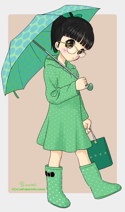 #傘の日 ちょっとなつかし絵〜(・∀・) ドール用の水玉の傘とかレインコートとか長靴あったらいいな