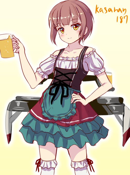 Z3「提督、ビールはいかが?」オリジナルディアンドルのZ3描きました。kasaran「ごめんよ、俺ビールのめないんだ……」