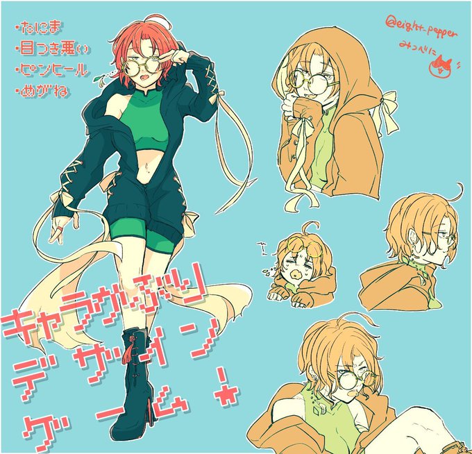 #キャラ被りデザインゲーム お題:谷間/目つき悪い/ピンヒール/眼鏡 参加者(敬称略):キャシー/三梅/傘ユキ/みつべに 強そうなお姉さんよりどりみどりになったよ!!!