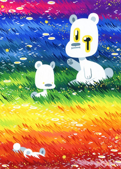 Oh to be this bear in a field of flowers enjoying honey.