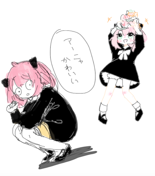 アーニャ描きたいpic② さっき上げたやつのアホ毛?触覚?付け足したのと可愛く描けた頭身withキメラさん