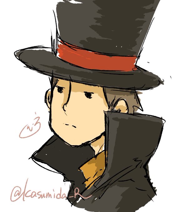 デスコール、レイトン先生、……青年ルーク、アロマさん レイトンキャラは描きすぎて手癖で描けるからよい