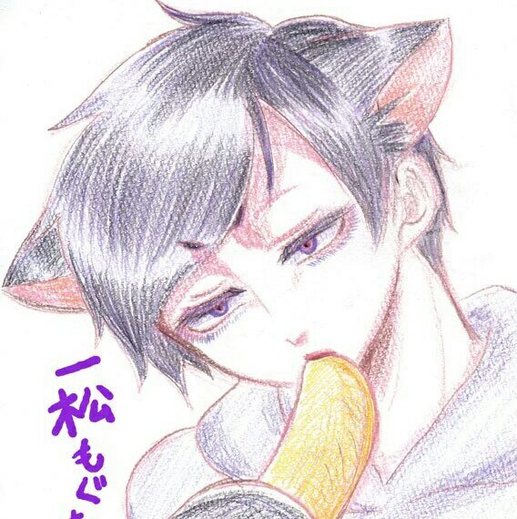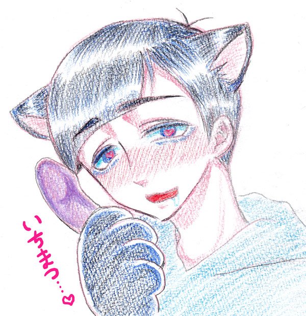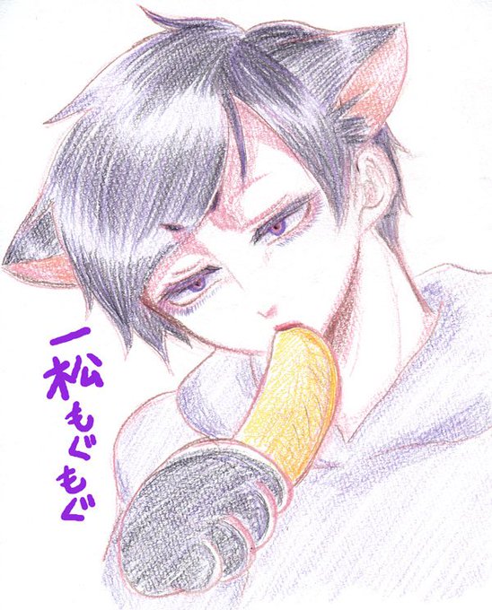 自分絵ですみません・・・一応チョロ松です・・・色鉛筆で25分くらい。PCでちょっと加工しました。
