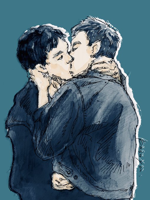 おっ23日って #キスの日 なのね〜寝るとか言ってたけど、元気なうちにBLみのある?キス絵置いとこ💋