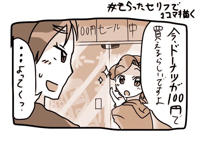 もらったセリフで1コマ描く 「今ドーナツが100円で買えるらしいですよ」(現パロ)
