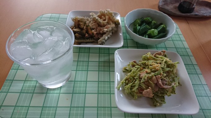 22/08/01(わむ)「皆様ぁ~こんばんは~ぁ(*^^*)💕わむですぅ~✨管理人さんの~ #夜ごはん って言うより~ #晩酌 ね~🏠😳🍶#夏野菜 #ゴーヤ と~ #オクラ なのよ~🎵『おいしいな~😍ウイ🎶』ですって~(^ー^)⤴️⤴️⤴️」#片上鉄道 #かたてつ!#夏 #擬人化 #片鉄わむ #ワム1807 #吉ヶ原駅