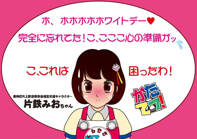 22/03/09(わむ)「みおちゃんったら~覚えてる~ぅ?3/14の #ホワイトデー💦」(みお)「はッ(O_O)💥💥💥・・・わ、忘れてたわ。もうすぐじゃないの~(>_<)💦💦💦」「管理人さんって~結構~ #お約束 を~守るヒトなのよ~(*´▽`*)✨」#片上鉄道 #かたてつ!#擬人化 #キハ303 #片鉄みお