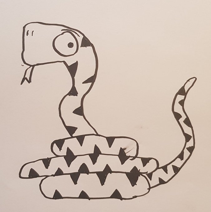 Three snakes for #DrawWithRob today, a little later than usual as I'm back at work part-time. The boys have nearly completed the book in my absence! Loving their @kuretakejapan pens too, maybe they'll let me use them one day...