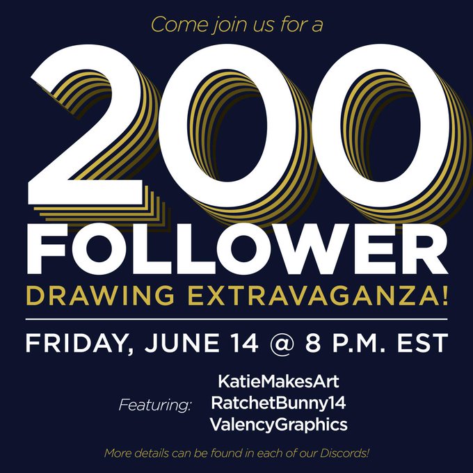 Join me for a drawing request stream with @Ratchetbunnny and valencygraphics on Friday, June 14 at 7PM CST to celebrate the fact that we all just recently hit 200 followers! 5-10 minutes per drawing, maybe we'll do one for you! ;) #twitchcreative