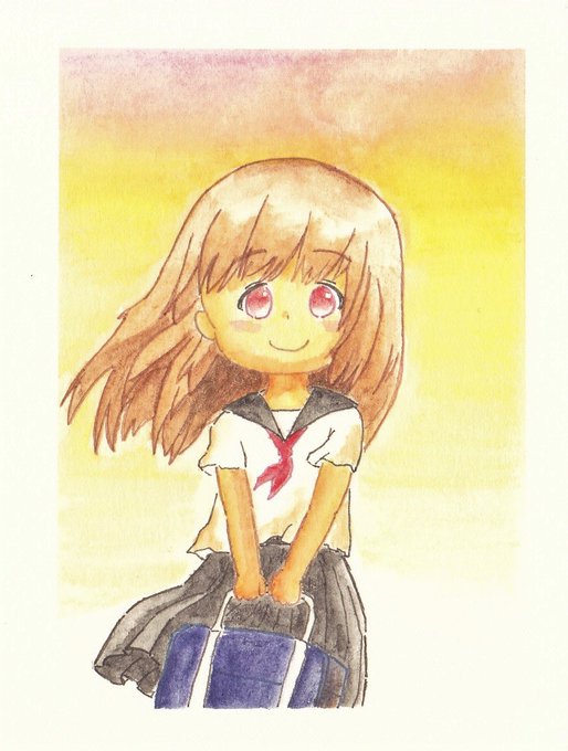 #マギレコ の環ういちゃん。 魔法少女服で描こうと思ってたけど、あのアニメ最終回観たら制服にしたくなった。この気持ち分かるよね……。 珍しく水彩じゃなく、油彩色鉛筆使ってみたけどめっちゃ難しかった。 #イラスト練習中 #アナログイラスト