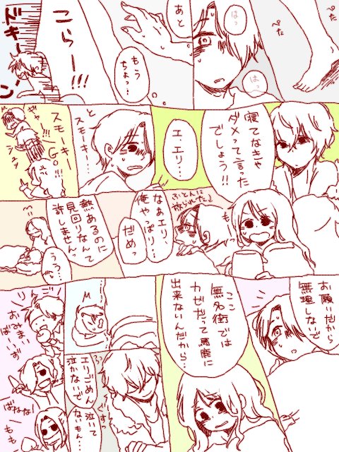 お題箱より『けにちくんとスモーキーさんとエリちゃんがお留守番で3人になってしまった』(+オマケ)と、『やくわくんとピーにいじられているけにちくん』