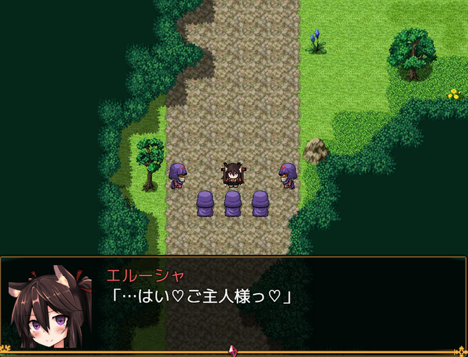 街道の続きを製作中です。 道を塞いでいるのは魔王崇拝教団の人たちです。 選択肢でえっちな目に遭います。 催眠系です。催眠好きな人は必見だと思います。