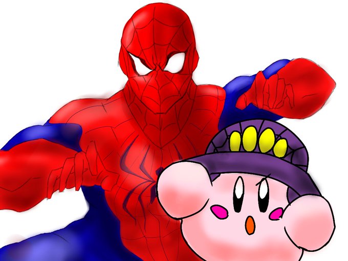 地獄からの使者とピンクの悪魔 「スパイダーマッ!!!」 「ぽぉゆ!」 #星のカービィ