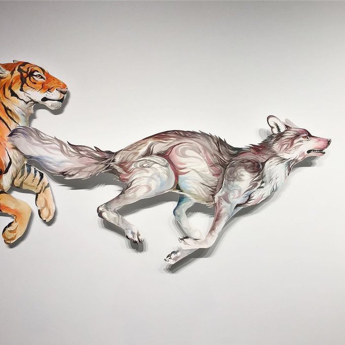 It's install day! 38 animals to go! This wolf is in 3 pieces. Can you see the seams? Biggg… https://t.co/uuK63dWMsG
