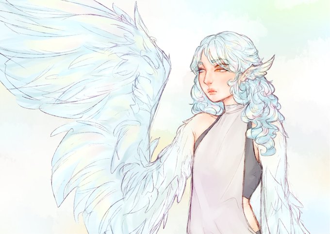 4. favrorite design may be.... bird? last image is the first drawing of them i think, it just started with wanting to make wing arms haha but im just a huge sucker for angel aesthetics ...also ive had them as my icon/banner for YEARS without changing them haha