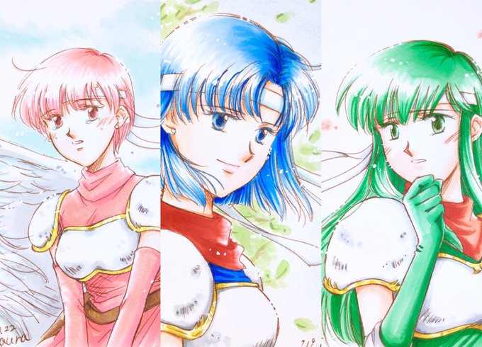 ということで、三姉妹詰め(๑˃̵ᴗ˂̵) ほぼ初描きなのに、意外な表情テーマにするとか、ファンに怒られそうですよねw 今度は笑顔の3人を描いてあげたいです! あと、三姉妹は揃ってこそなので、fehにはまずうさエストも早く実装してあげてくださいw #パオラ #カチュア #エスト