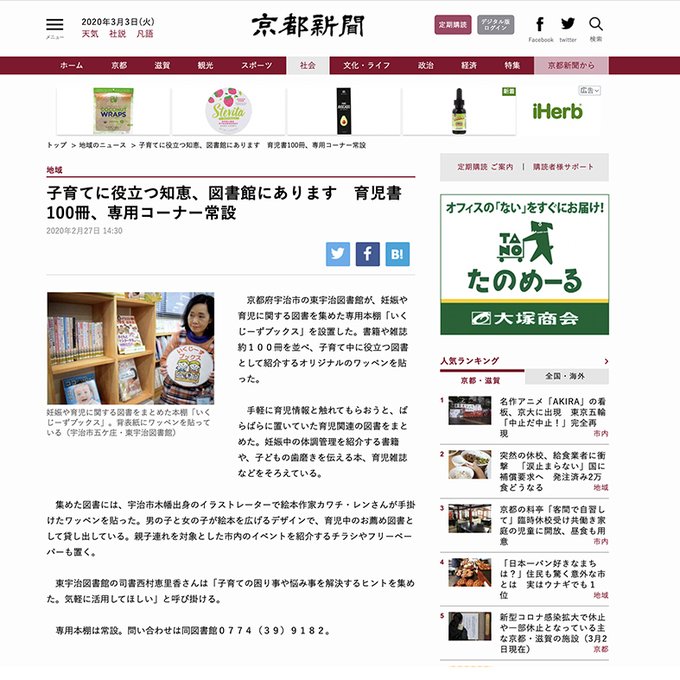 ご縁があり、地元の図書館で使用されるワッペンのイラストを描かせていただきました。京都新聞でも紹介されました!