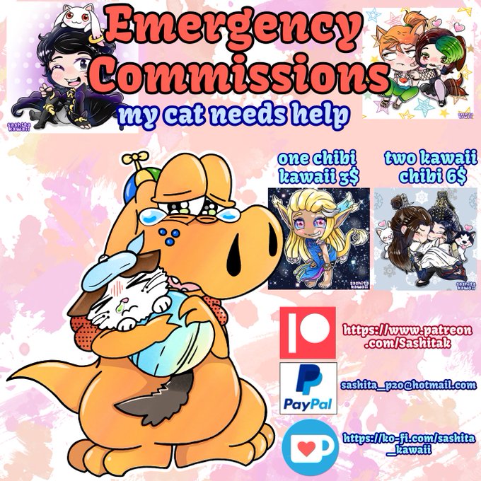 Ayer abrí comisiones de emergencia por Instagram ya que mi gato está gravemente enfermo y estuvo al borde de la muerte gracias a dios lo lleve a tiempo pero debe seguir un tratamiento estricto para que se recupere...
