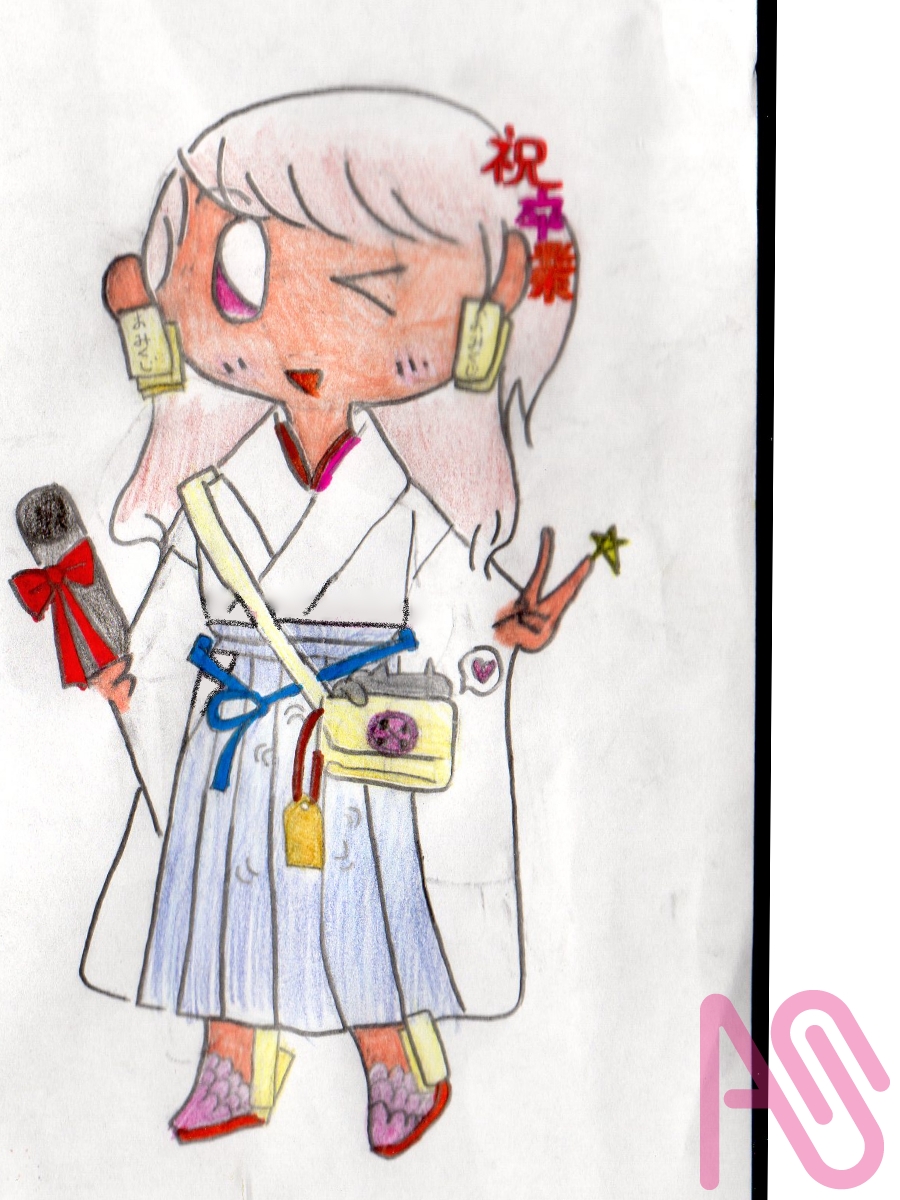 ぽっくりの髪飾りを付けた杏子ちゃんとしくらちゃん。猫耳を描く時でも特に、三毛猫の耳は仕上げるのが難しいわ~