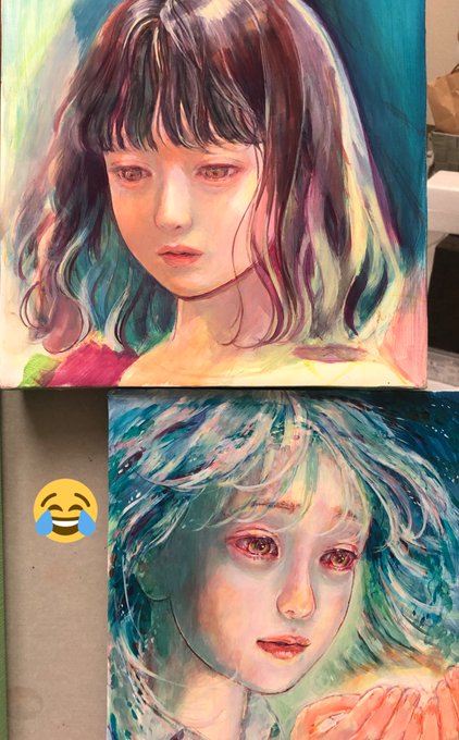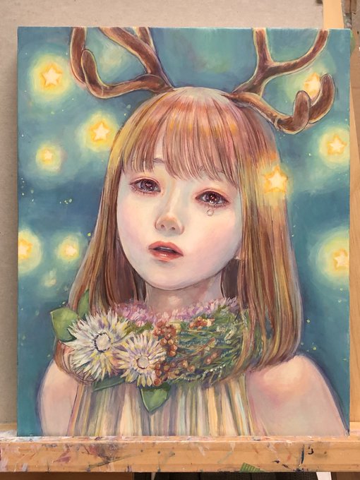 最近やっと絵柄安定してきたかも😊何かが足りなくて完成できてなかったこの絵もついに終わるかな?#油彩画 #wip