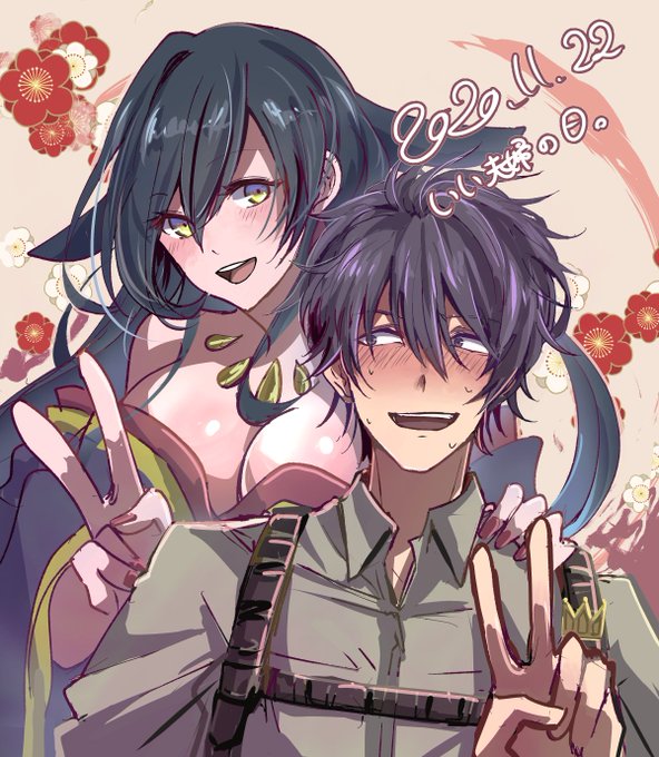 いい夫婦の日~! 善良で奥手な陰キャ君と武士みたいな激しい性格の妻の創作CPです🌸 #良い夫婦の日