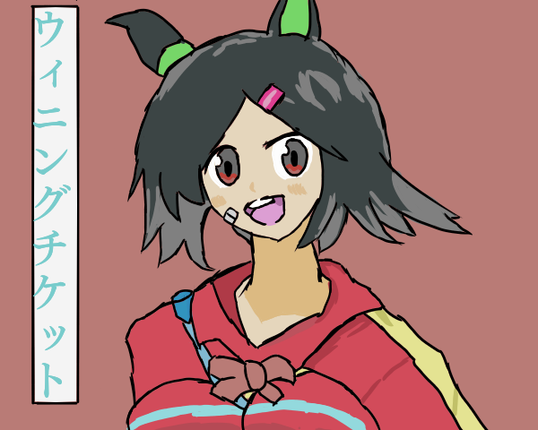 ウィニングチケット摸写できましたな!描いてて後ろ髪の影の色は薄くすることで表現できること、肌色の色を少しだけいじるだけでほっぺなどを表現できることを学べてとっても満足です