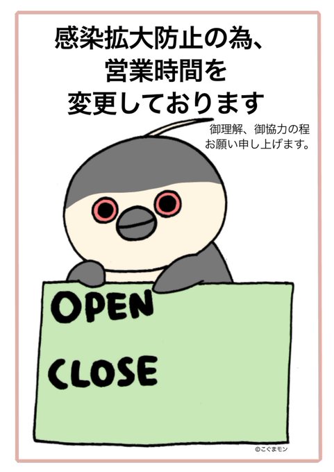 同じセリフを何度も言うことに負担を感じている皆さんへPart2 A4サイズにプリントしてご自由にお使いください🐧 営業時間は書き込み式です🐧 #ゴイサギ #コロナに負けるな