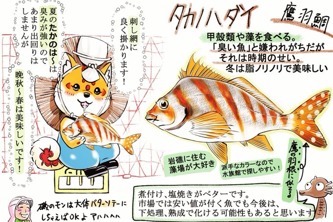 ふなだまさんの魚話 タカノハダイ 地元はタカノハァみたいな呼び方。タカッパ、ヒダリマキ等の地方名が沢山ある魚。藻を食うから臭いと言われるけど、あんまり臭い個体には当たった事ないなぁ~ 私は好きな魚です👍️ #ふなだまさん