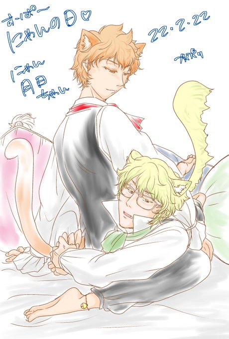 にゃんにゃんのひ即席で描きました… そして次は3月5日が目前です! もじゃの日ですよ月日の皆しゃん! もじゃ月日を描くのです…もじゃ #月日