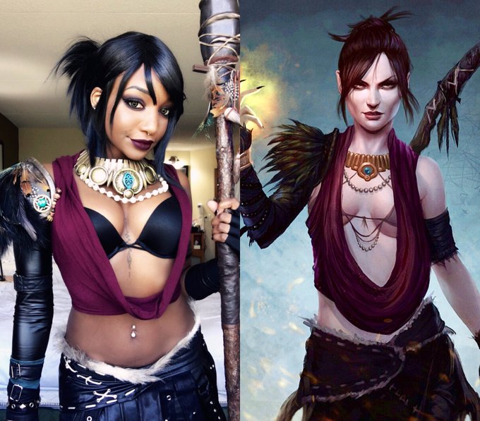 Cosplay side by side for Morrigan! She’s a babe. Cosplay made by me!