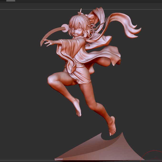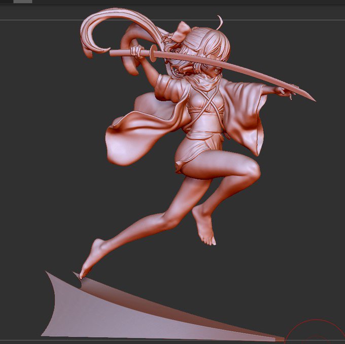 沖田さん進捗!だいぶ全体が見えてきた。 全方位からのシルエットはいい感じにしていきたい。 やっぱり動きのあるポージングは作ってて楽しいね! そしてここから地味ーな作業が続くのはアナログでもデジタルでも一緒なのであった・・・。