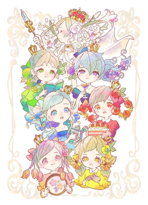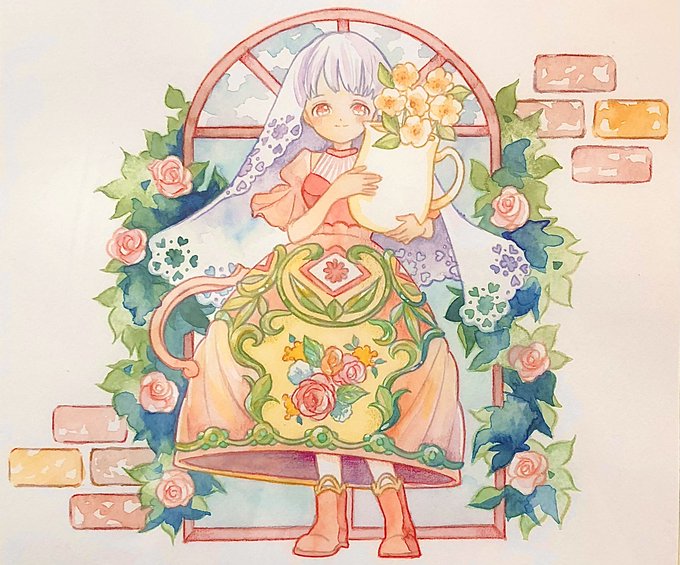"少女という花"をテーマとした、お花の髪を持つ女の子たち「フロールチカ」シリーズを中心に、スイーツモチーフの着物や、ティーカップのドレスを着た女の子たちを描いています🌷