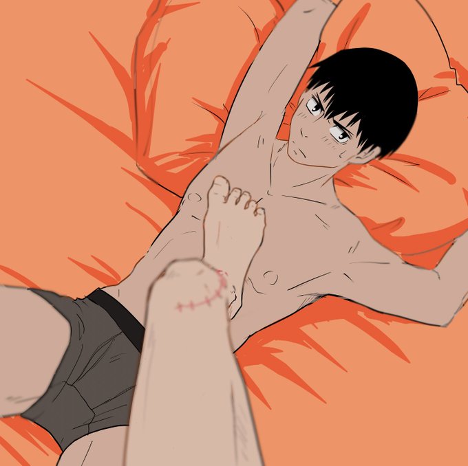 今日のラクガキ 3P部屋ネタ強行参加!😅 部屋にラブホベッドがあったのでとりあえず寝転がってみた灰榊走・・・ナンソレ!