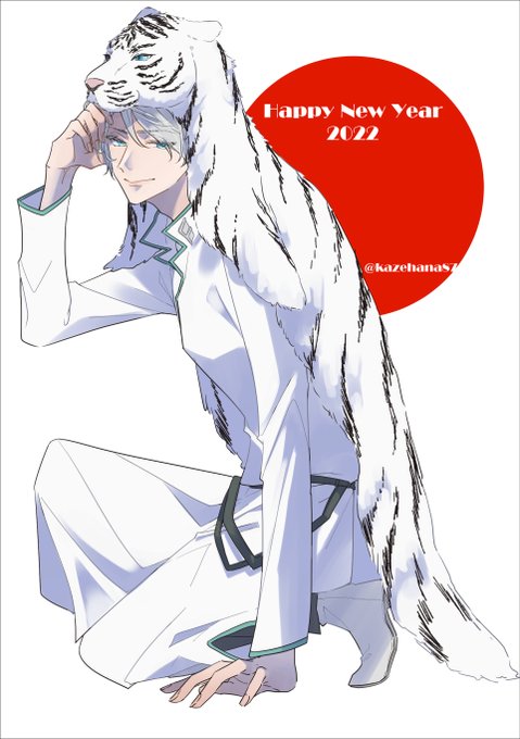 #hacca_1hour #花帰葬 あけおめ灰名さま🎍描き初めです 銀狼なのでホワイトタイガーを背負って頂きました🐯 1.5ドロです