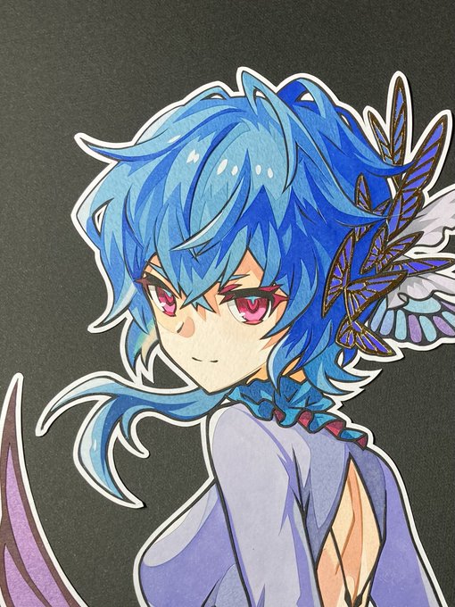 今日はアルマスの誕生日🎉 過去の切り絵をそぉい! 羽根の色合いと金色の装飾がお気に入り
