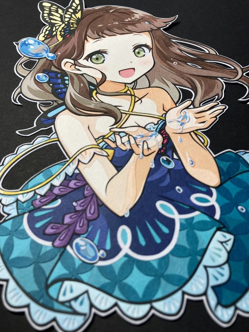 ファンキルより 天沼矛の切り絵、完成です🌀 水滴の表現や服の柄が綺麗に出来たと思います。 見て頂けると嬉しいです! #ファンキル #切り絵