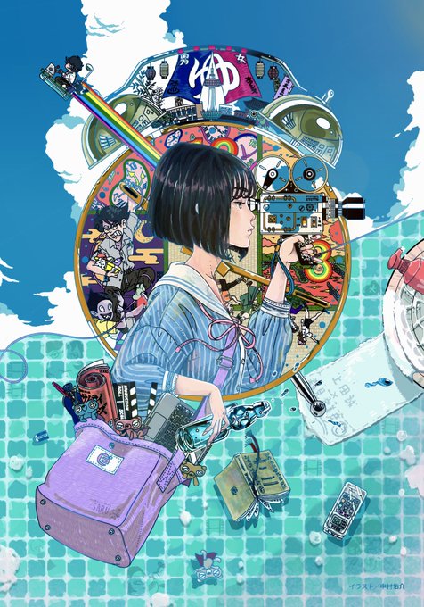 1番のアピールポイントはラムネの夏らしい質感❗️ 背景は作中に登場した銭湯のイメージで 数字とかは舞台のポスターとかのオマージュ コンテストだったので最終的に外したけど四畳半の原作者も主題歌も声優さんも大好きだからその要素を入れた版も描いた!(1ファンアートとしてこっちも載せちゃう)