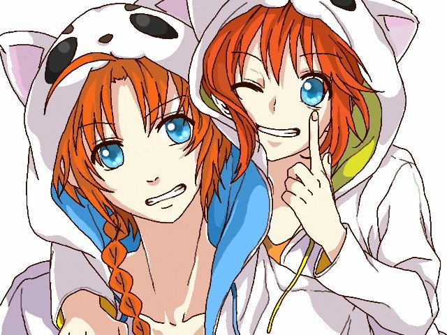 夜兎兄妹ー!パーカーのフードは定春です