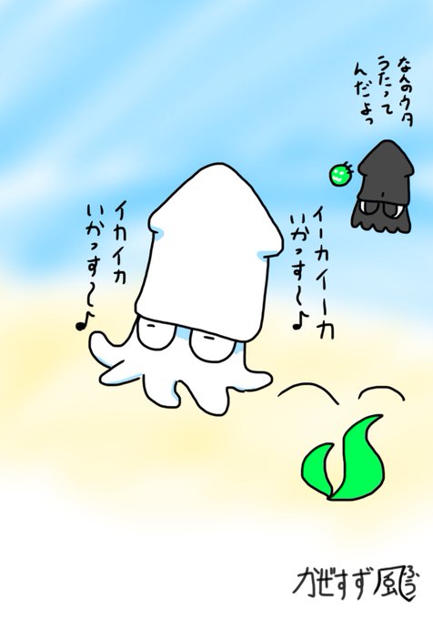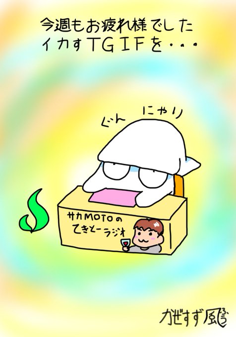 明日もいい一日をお過ごしください。 なんとなく口ずさんでみた #いか #イラスト #歌 #土曜日