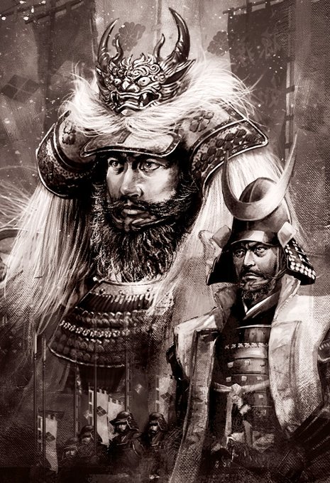 前のツイからすると本多忠勝?って思った方、ゴメンなさい。つい本気モードに突入😅故に、まだ時間がかかります。なので過去絵流用どうする絵wをツイ。ヒリヒリしたあのシーンをアツイ面々と思いで再構成😆