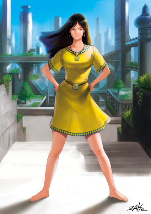 夏が終わろうとしている今、あえて、夏娘を描く。いろいろ悩んだ末、夏のアトランティスを舞台とした、オリハルコンなイメージの女子を中二病的エネルギーで描く。