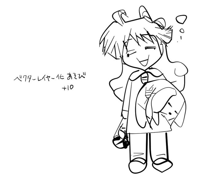 「自分の絵をパソコンに模写してもらったらこうなっちゃった」シリーズ。クリップスタジオというお絵かきソフトのベクターレイヤー化機能を使って、ラスターレイヤーに描いた絵を計算して真似してもらった。これは加工レベルを「中」の10に設定したもの。MAXにしたものは次にて。