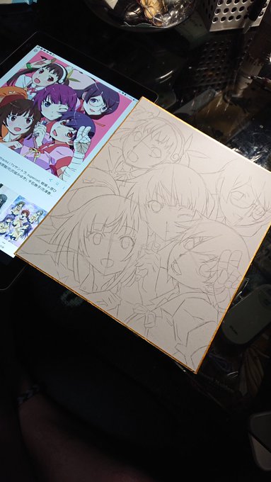 今進行形のイラスト達。 化物語ヒロインと ノゲノラゼロの一枚絵。 ノゲノラゼロキャラ多過ぎて色塗りが絶望的やわ笑 #イラスト #ノゲノラゼロ #化物語